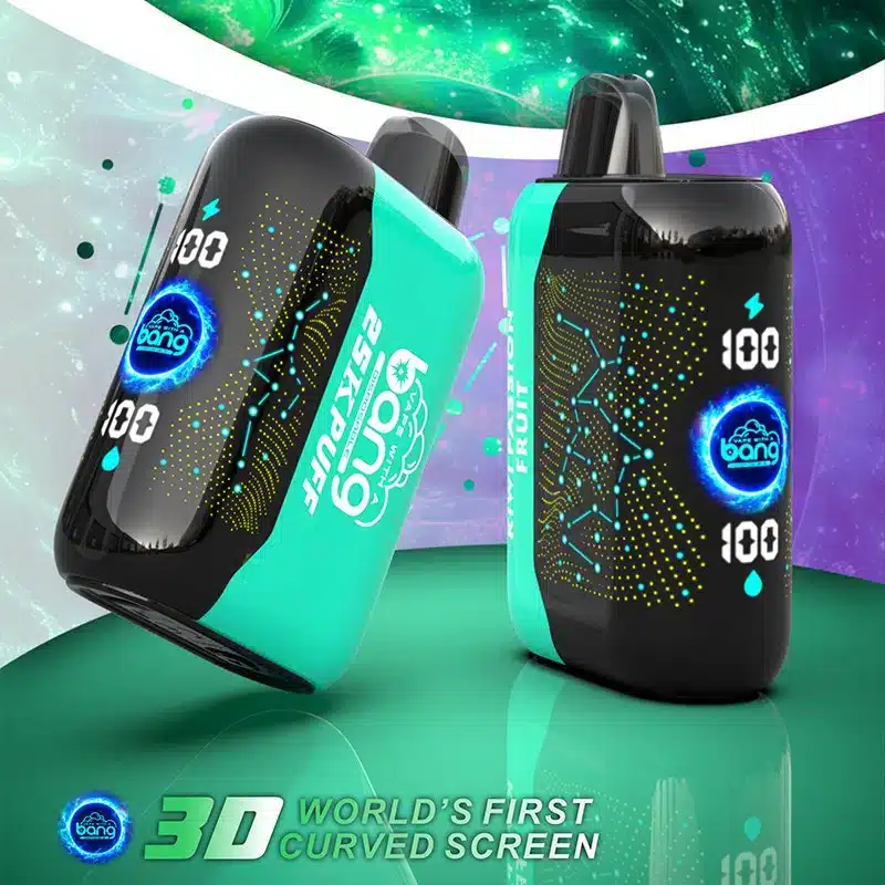 Le Bang Starry 25K se distingue par son écran 3D incurvé unique qui affiche batterie et niveau d'e-liquide en temps réel. Cette innovation améliore considérablement l'expérience utilisateur en éliminant les surprises de panne sèche.